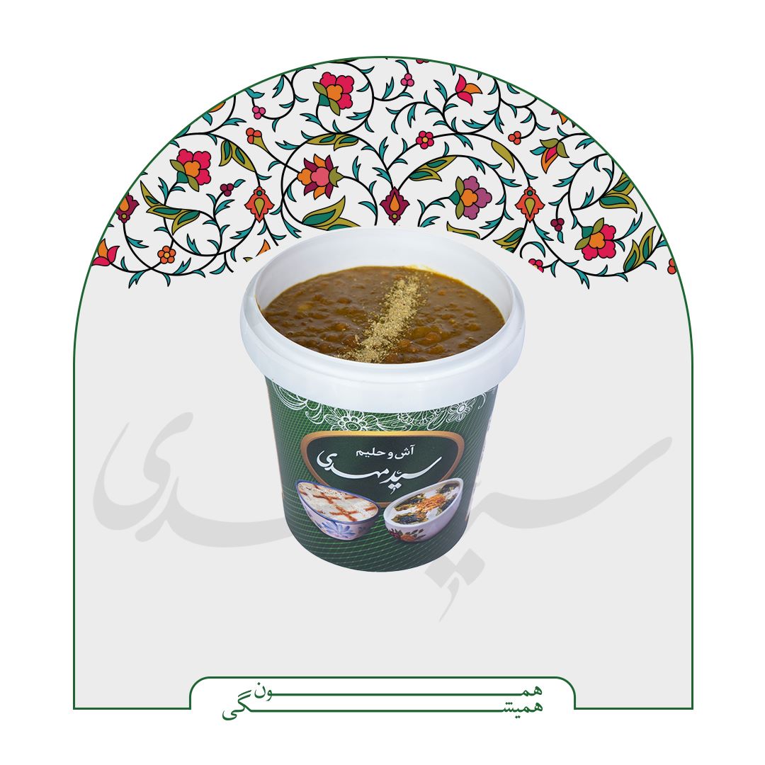 حدود500 گرم آش رشته با تزئین کشک، پیاز داغ و نعنا داغ بهمراه یک بسته نان لواش و کاتلری